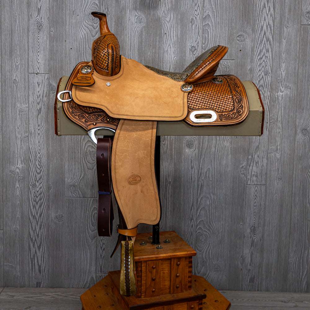 Experience the ultimate in comfort and performance with the Bw Barrel 1/2 Weave W/ Floral Border, Bicycle Seat, Close Contact saddle. Designed with a half weave and floral border, this saddle offers a secure and comfortable fit while riding. Perfect for barrel racing and other high-impact activities, you can trust this saddle to keep you in control and on top of your game.