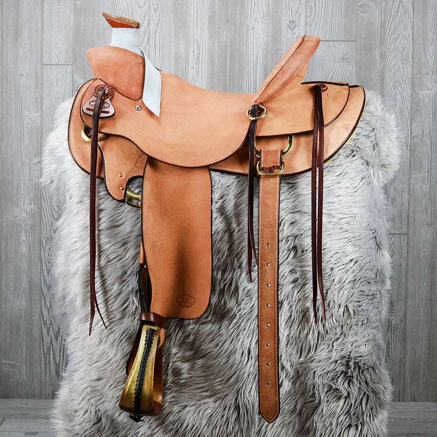 This Cliff Wade Cowboy Saddle features a rough out design, making it perfect for long rides and rough terrain. Crafted with expert precision and quality materials, this saddle offers both comfort and durability. Get ready to conquer any trail with the Cliff Wade Cowboy Saddle.