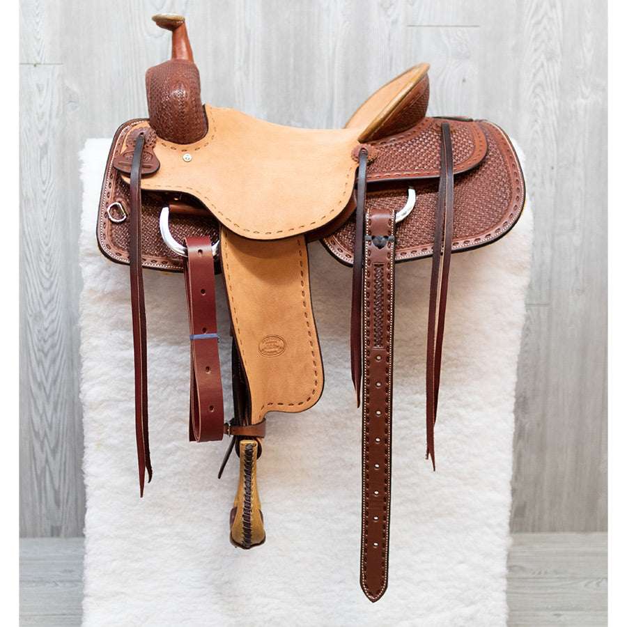 Ranch Cutter – 8969 The Ranch Cutter – 8969 is a premium saddle designed for riders seeking a blend of style and practicality. Its distinctive 1/2 breed crazy stamp and buckstitch border highlight expert craftsmanship, while the ranch cutter build guarantees outstanding performance and rider comfort. Signature 1/2 breed crazy stamp with buckstitch border design Ranch cutter build tailored for versatility and support High-quality leather construction for durability Comfortable seat design optimized for long rides Reinforced stirrups and rigging for enhanced stability Compared to standard industry models, the Ranch Cutter – 8969 stands out with its unique artistic detailing and superior build quality. Its design enhances both aesthetic appeal and function, making it an excellent choice for riders who want reliability without sacrificing style. The saddle’s balance and comfort exceed typical ranch cutter saddle expectations, setting a new benchmark in this category. Key Technical Advantages: The combination of the innovative 1/2 breed crazy stamp pattern with durable buckstitching provides not only a striking look but also long-lasting wear resistance. The specialized ranch cutter structure supports diverse riding activities, delivering exceptional performance and comfort. This model’s reinforced components ensure stability and safety, reflecting advanced manufacturing techniques focused on rider experience.