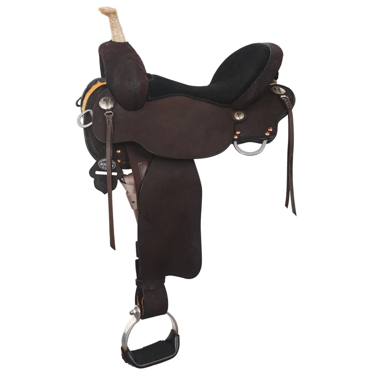 Description Specifications Lightning fast and lightweight, Martha built the Martha Josey Lightning Contender for the barrel racer who doesn’t want the extra weight and bulkiness of a full-skirt saddle. The lack of excess weight on the horse’s back lightens the load and ability to travel faster, decreasing their time in the arena. Instead, the cutout skirt of the saddle eliminates extra pressure on the horse’s back when in competition, ensuring a close contact fit and balance for both you and your horse. The dark chocolate roughout, braided strings, and lightning bolt conchos dress up this functional yet attractive saddle that will surely take you to the winner’s circle. Cantle Height: 5″Horn: 4″ Tall, 2 1/4″ CapSwell: 13″Skirt Length: 13 1/2″ D x 24 1/2″ LDiscipline: BarrelRigging: 3-Way Adjustable In-SkirtTree Type: Ultimate DURAhideOther Upgrades: Rawhide Braided Horn, Strings(4)Tooling Type: NoneHardware: Black Lightning BoltWarranty Type: 10 Year Tree Warranty, 1 Year CraftsmanshipWeight: 24 lbsCountry of Manufacture: United States