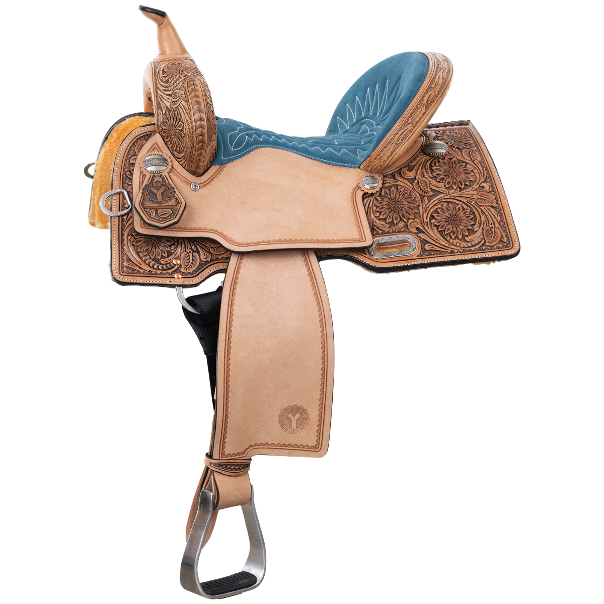 Description Specifications For barrel racers who demand both functionality and style, the Maisle Freedom Fit Barrel Saddle delivers on every level. The Freedom Fit wood tree has the unique advantage of a narrow seat twist specifically for female riders to feel comfortable and aligned in the saddle. Designed with a wide swell and a tall 5” cantle, this saddle ensures you stay in the ideal position through powerful turns. The Maisle makes a bold statement with its intricate sunflower hand tooling, ensuring you shine in the arena. Choose between a striking blue suede seat or a sleek jet-black suede to match your energy and set the tone for your ride. Getting the right fit for your horse is just as important to us as it is to you. Here’s what we generally recommend: • Regular tree fit: Ideal for horses with more defined withers. • Wide tree fit: Perfect for horses with a foundation build and rounder withers. • Extra Wide tree fit: Perfect for horses with a wide build and and round withers. Cantle Height: 5″Horn: 3 1/2″ Tall, 2 1/2″ CapSwell: 14″Skirt Length: 13″ D x 25″ LDiscipline: BarrelRigging: 3-Way Adjustable In-SkirtTree Type: Wood Freedom FitOther Upgrades: Quilted Seat (white)Tooling Type: 1/2 Sunflower with Hand Tooled BorderHardware: Antique Beaded CrownWarranty Type: 10 Year Tree Warranty, 1 Year CraftsmanshipWeight: 25 lbsCountry of Manufacture: United States