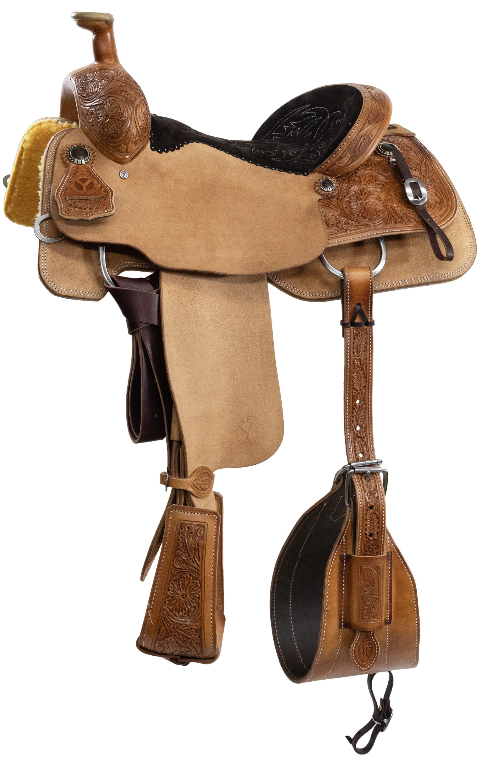 Description Specifications The 4433 PRCA Team Roper is designed by professionals with team ropers of all ranks in mind. Whether you’re backing into the box for the first time or the ten thousandth, you can be confident this saddle will deliver the durability and strength that ropers require. The one-piece swell and Kevlar-reinforced tree prove its strength and durability. The ground seat features a narrow twist that is intended to keep ropers stable and balanced, helping you catch more steers while staying comfortable and not straining your body. This saddle is built to help ropers rope better and more consistently. With both regular and wide tree options, this saddle is built to fit all conformations of horses to let them work to the best of their ability with a great saddle fit. Made with premium Hermann Oak leather, this saddle showcases 1/4 TB flower tooling mixed with classic roughout, finished with brown iron conchos with silver for a traditional roping look. Officially licensed by the PRCA and tested and approved by professional cowboys, the 4433 is built for hard-use performance and timeless style, ride after ride, run after run. Cantle Height: 3 1/2″Horn: 3 1/2″ Tall, 3″ CapSwell: 13″Tooling Degree: 1/4Skirt Length: 26″ LRigging: 7/8 Double DeeTree Type: LTM Kevlar ReinforcedSkirt Drop: 14″Discipline: RopingOther Upgrades: Real Wool; Hand Pop-Stitched Seat; Rawhide Lip on Horn; Premium HOAK Leather; One Piece Swell; Oil-Tan Lined Flank & Billet SetCantle Style: 1 1/2″ LeatherWeight: 40 lbsTooling Type: Wyoming Flower Hand TooledPROP 65: TrueLeather Finish: Regular OilKey Features: Hand tooled; One-Piece Swell; Rawhide Lip on Horn; Premium HOAK Leather; Real Wool; Hand Pop-stitched seat; PRCA Branded; PRCA Brown Iron Conchos; Steer Head Quilted Seat; Seat Pocket Designed for Balance; Kevlar Tree; Lifetime Warranty; Oversized Roper Stirrups; Latigo Tie Straps; Oil Tanned Roper Flank Cinch Set Included; Rigging position is between a full and 7/8 to help with f