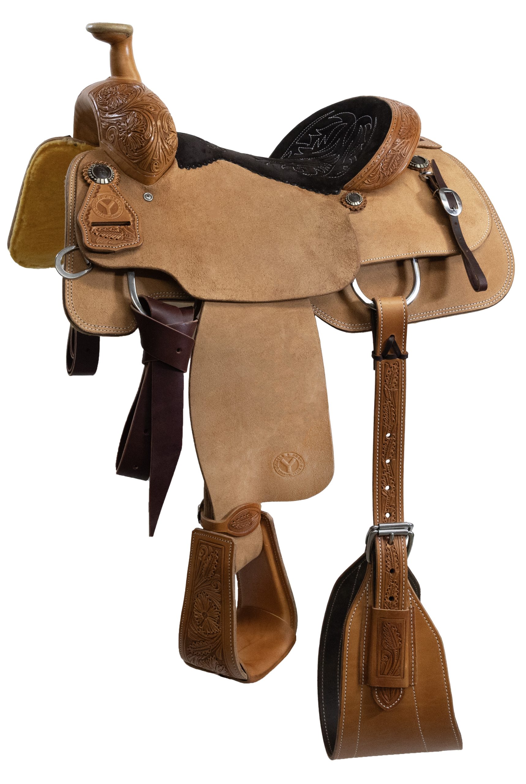 Description Specifications The 4435 PRCA Team Roper is designed by professionals with team ropers of all ranks in mind. Whether you’re backing into the box for the first time or the ten thousandth, you can be confident this saddle will deliver the durability and strength that ropers require. The one-piece swell and Kevlar-reinforced tree prove its strength and durability. The ground seat features a narrow twist that is intended to keep ropers stable and balanced, helping you catch more steers while staying comfortable and not straining your body. This saddle is built to help ropers rope better and more consistently. With both regular and wide tree options, this saddle is built to fit all conformations of horses to let them work to the best of their ability with a great saddle fit. Made with premium Hermann Oak leather, this saddle showcases 1/8 TB flower tooling mixed with classic roughout, finished with brown iron conchos with silver for a traditional roping look. Officially licensed by the PRCA and tested and approved by professional cowboys, the 4435 is built for hard-use performance and timeless style, ride after ride, run after run. Cantle Height: 3 1/2″Horn: 3 1/2″ Tall, 3″ CapSwell: 13″Tooling Degree: 1/8Skirt Length: 26″ LRigging: 7/8 Double DeeTree Type: LTM Kevlar ReinforcedSkirt Drop: 14″Discipline: RopingOther Upgrades: Real Wool; Hand Pop-Stitched Seat; Rawhide Lip on Horn; Premium HOAK Leather; One Piece Swell; Oil-Tan Lined Flank & Billet SetCantle Style: 1 1/2″ LeatherWeight: 40 lbsTooling Type: Wyoming Flower Hand TooledPROP 65: TrueLeather Finish: Regular OilKey Features: Hand tooled; One-Piece Swell; Rawhide Lip on Horn; Premium HOAK Leather; Real Wool; Hand Pop-stitched seat; PRCA Branded; PRCA Brown Iron Conchos; Steer Head Quilted Seat; Seat Pocket Designed for Balance; Kevlar Tree; Lifetime Warranty; Oversized Roper Stirrups; Latigo Tie Straps; Oil Tanned Roper Flank Cinch Set Included; Rigging position is between a full and 7/8 to help with f