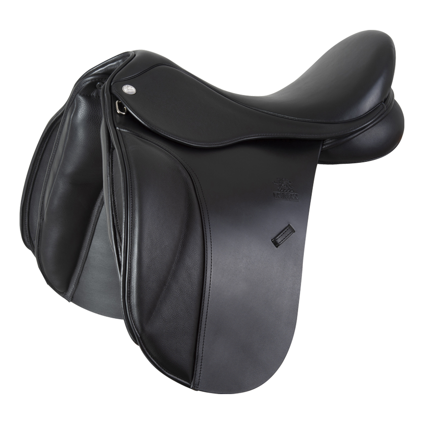 A luxurious dressage saddle for all low-wither and flat back conformations (not just Cob-types), giving the rider a feeling of sitting close to their horse.