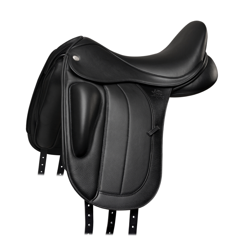 A truly luxurious hide-covered monoflap for the dressage rider seeking a close-contact feel. The surface-mounted thigh block offers optimum support but is not too large or restrictive.