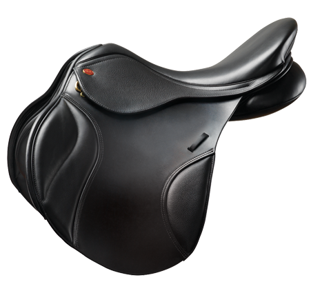 Ghosted stitching allows knee pad to contour over the knee-roll and hide-covered calf pad make this a high comfort GP. Cut forward enough to accommodate a jumping leg position. Open-headed tree and well-balanced panel make this a very universal fitting saddle.