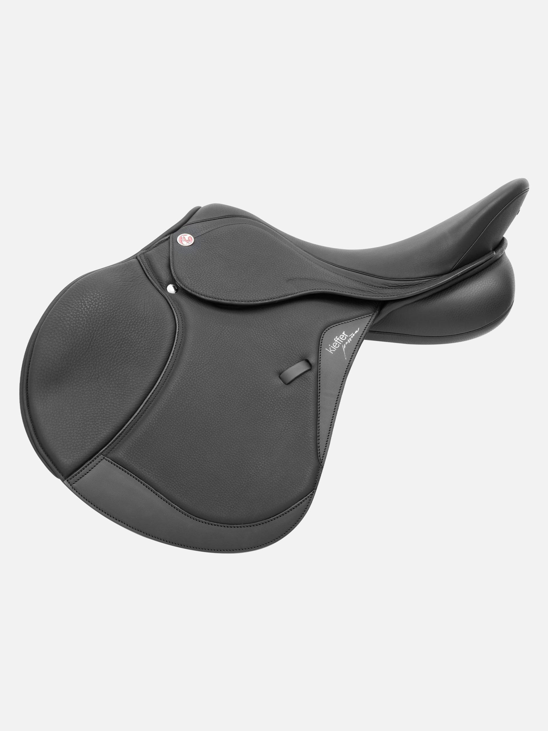 Springsattel Passion Four ergänzt das Sattelsortiment von Kieffer Passion um ein Modell, welches insbesondere sportlich gebauten Pferden mit kurzer, gerader Sattellage entgegenkommt. Der Passion Four basiert auf dem Konzept des Sattelbaum 1000 kombiniert mit einem dazu passenden, weich gepolsterten Sattelkissen. Die Auflagefläche kann somit perfekt mit der verkürzten Oberlinie des Pferdes harmonieren und gewährleistet eine hervorragende Passform. Der weich gepolsterte, anatomisch tiefe Sitz und variable Klettpauschen ermöglichen uneingeschränkten Sitzkomfort und größtmögliche Flexibilität für den Reiter. Die doublierten Sattelblätter sorgen für mehr Haftung am Sattel und sind an der Unterkante verstärkt, um Abnutzungen des Sattelblattes durch die Stiefel zu reduzieren.