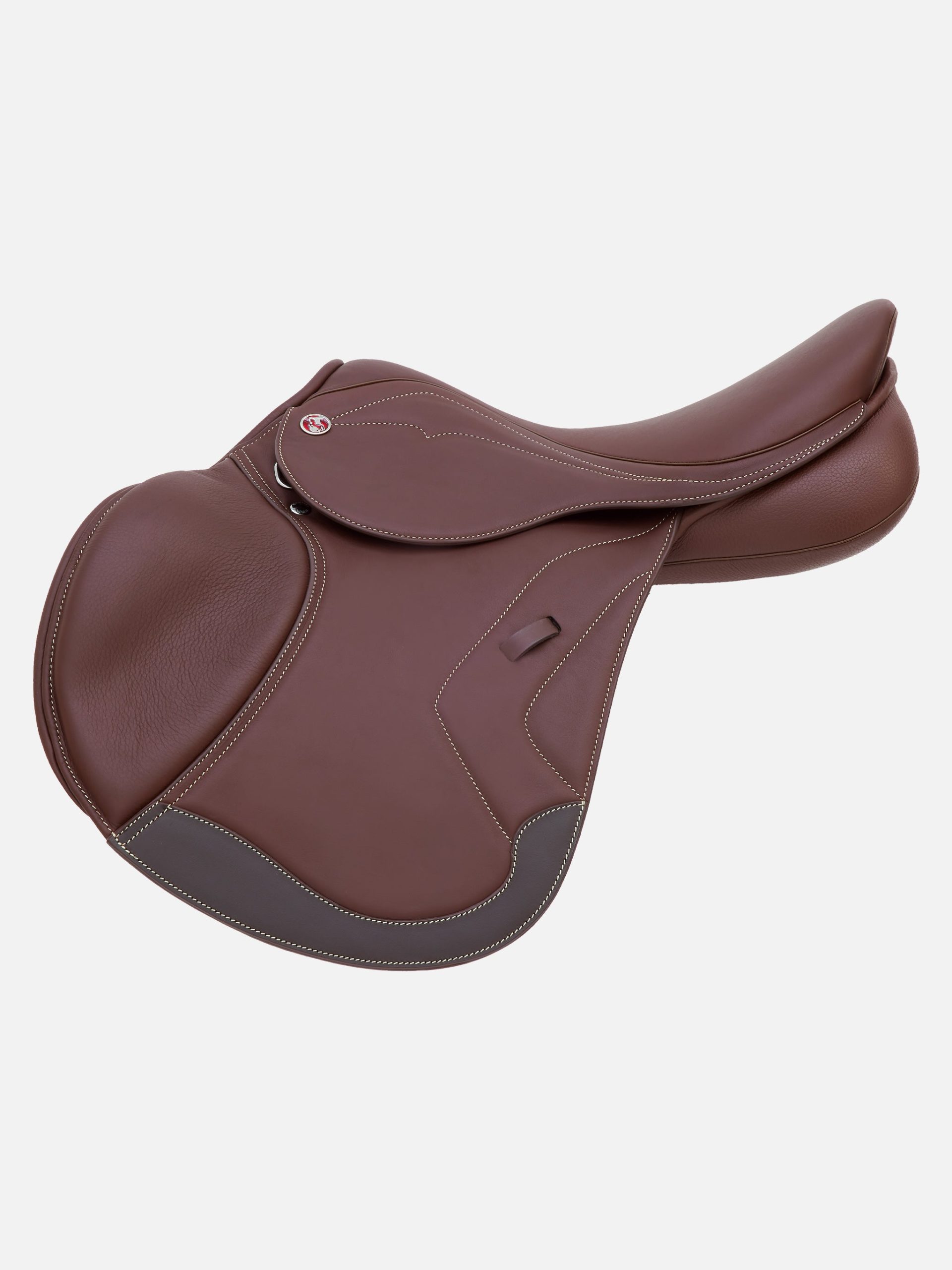 Springsattel Palmanova ist ein sportlicher Flachsitzer, der für Reiter und Pferd gleichermaßen höchsten Komfort und Flexibilität bietet. Dieses Sattelmodell mit stufenlos verstellbarem 1000 Exclusive Sattelbaum und mit weicher Polsterwolle gefülltem Sattelkissen lässt sich bei Bedarf beliebig oft in der Kammerweite verstellen und nachpolstern. Dank der Knie- und Wadenpauschen mit Klett kann das Sitzgefühl nach individuellen Vorlieben angepasst werden. Griffiges doubliertes Leder, die dynamisch flache Sitzkurve und das vorgeschnittene Sattelblatt mit vorgeformter Knielage geben im leichten Sitz sicheren Halt in der Sprungphase. Das moderne Design in der Lederfarbe Chestnut mit cremefarbenen Kontrastnähten sieht nicht nur beim neuen Sattel megaschick aus, sondern entwickelt mit der Zeit eine lebendige, individuelle Patina, die den Sattel zu einem Unikat macht.