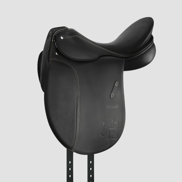 The Hubertus Schmidt II Dressage Saddle with light-colored, elegant stitching is the result of the excellent collaboration between Passier and professional dressage rider Hubertus Schmidt. The thick thigh supports easily keep the rider’s legs in the correct position. With its soft and deep seat the saddle guarantees extremely good riding comfort and enables the rider to exert finely tuned influence. The saddle is available with sparkling Premium Crystals and design variations on the cantle. Design Variations on the Cantle shown here Natural Grip leather Seat, knee inserts, and panels: Selloil leather PS saddle tree, deep seat, thick thigh supports, 2 x 70 cm (28″) billet straps incl. point billet straps, light-colored, elegant stitching, freedom panels