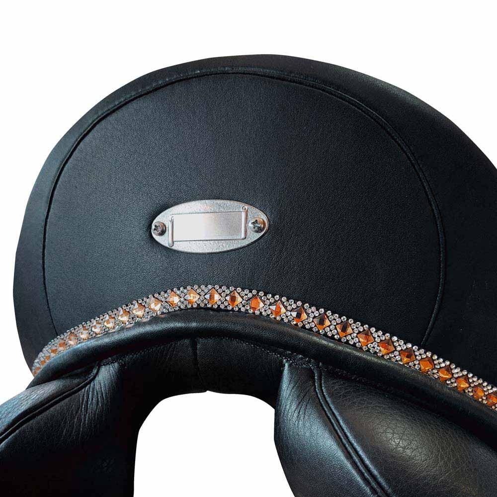 ¡Dale brillo a tu silla de montar! Dale un toque original adornándola con la tira decorativa Zaldi. ¡Dale!!! Fácil de colocar mediante los lazos elásticos ajustables por debajo del faldón. Dale un toque de brillo y color con la tira decorada con pedrería de colores. ¡Dale color!!! Gran variedad de colores, combinaciones y anchos. Ancho tira: 1 cm Largo tira: 31 cm Color: cristales brillantes blancos y marrones. Ver video para saber cómo colocar la tira en la silla.