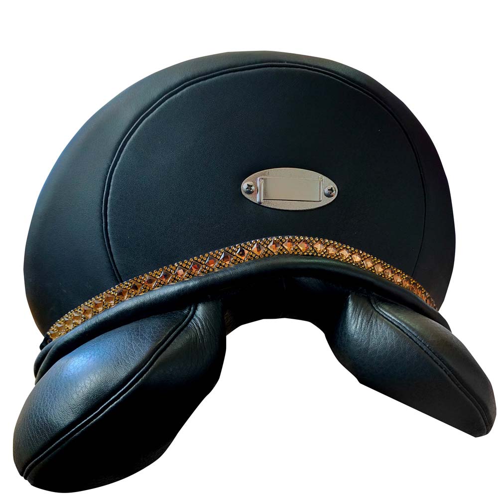 ¡Dale brillo a tu silla de montar! Dale un toque original adornándola con la tira decorativa Zaldi. ¡Dale!!! Fácil de colocar mediante los lazos elásticos ajustables por debajo del faldón. Dale un toque de brillo y color con la tira decorada con pedrería de colores. ¡Dale color!!! Gran variedad de colores, combinaciones y anchos. Ancho tira: 1.1 cm Largo tira: 30.5 cm Color: cristales brillantes marrones. Ver video para saber cómo colocar la tira en la silla.