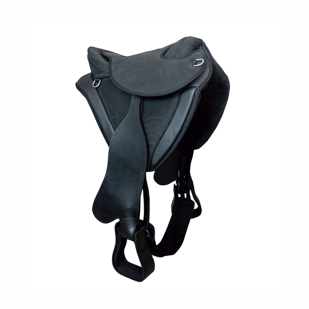 Silla de marcha completa (incluye cincha de neopreno, ación con faldón y estribo western). Peso de la silla sin equipo: 4.820 kg. Medida del baste: 60 cm. Medida del faldón: 37 cm. Color: Negro.