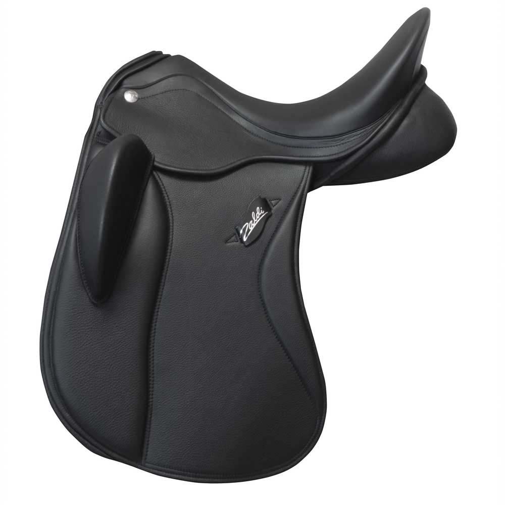 Ref. 001519 – Silla ZALDI Doma SANJORGE CON TM. Espectacular silla que reúne cualidades que marcan la diferencia entre las sillas de Doma Clásica. Excelente cuero, armadura flexible, diseño ergonómico… se traducen en libertad de movimiento, contacto con el caballo, fijación y la experiencia única de la confianza. El jinete encuentra en esta silla la expresión de sí mismo. Grandes jinetes y profesionales de todo el mundo apuestan por ella. Sobre una nueva armadura muy profunda y cómoda, esta silla permite el máximo contacto jinete-caballo. El jinete descansa sobre una nueva estribera con una estudiada inclinación del 15% que consigue una postura más correcta para el jinete, corrigiendo errores al inexperto y dejando desarrollar al experto. Nuevo diseño ergonómico del faldón (largo de doma) que dispone de doble rodillera de 2 tacos en uno que permite montar en 2 posiciones diferentes. Baste mixto, lana con tratamiento repelente agua-sudor y tope de goma látex que evita el balanceo sobre el dorso del caballo, consiguiendo gran asiento y propiciando libertad al caballo. Latiguillos mixtos separados ofrecen fijación absoluta al caballo consiguiendo el máximo contacto del jinete-caballo. Uno delantero para evitar que la silla avance sobre la cruz y así facilitar los movimientos de las espaldas. El trasero en forma de « V » sujeta la silla y no produce balanceo en la zona posterior. Material de cuero especial flexible, muy elástico y duradero. ** Con TM-System incorporado. ** Con el TM incorporado, al estar sujeto en el muslo dejamos las rodillas libres para realizar ayudas y apoyos con plena soltura y libertad. ** La Silla ZALDI Doma SANJORGE también está disponible sin el TM-System (consultar ref. 00151). ** MATERIALES: * Nueva piel europea natural, más resistente y flexible. * Asiento de goma látex muy profundo pero cómodo. * Faldón de doma ergonómico. * Nuevo diseño del faldoncillo. * Baste relleno de lana con tope de goma. * Armadura de polipropileno, elástica y muy r